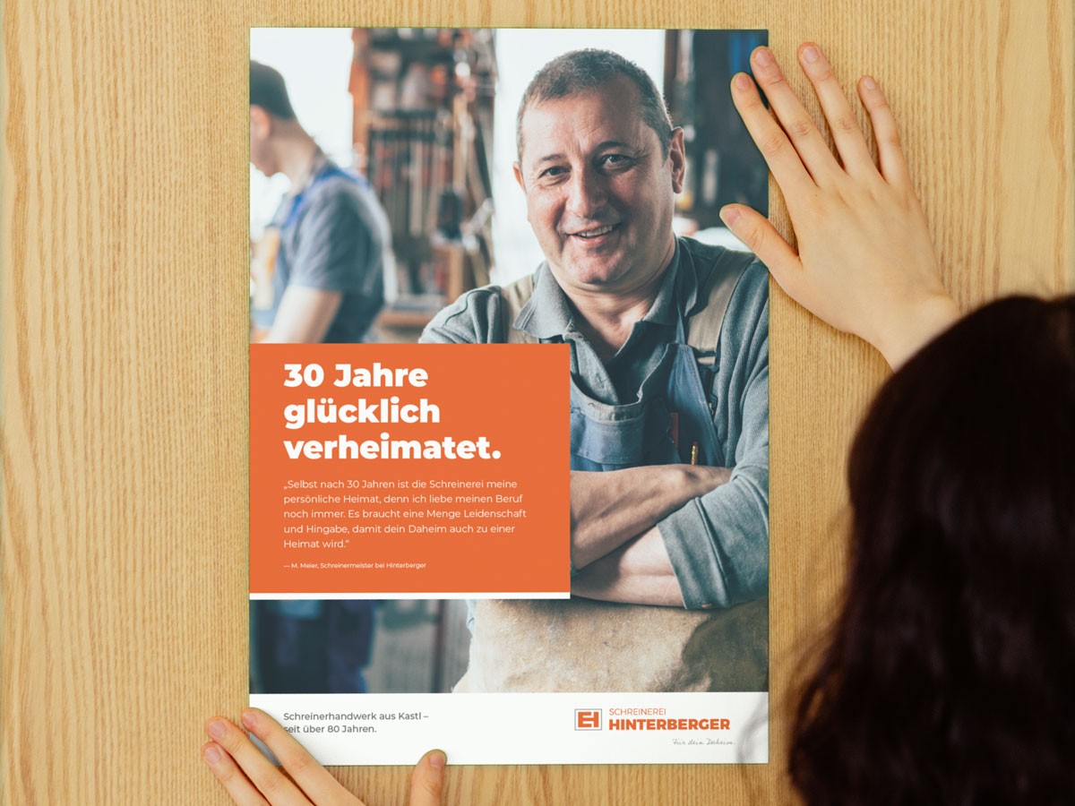 Eine neue Identität für die lokale Schreinerei Hinterberger, die sich auf Familienwerte und die Bedeutung des eigenen Zuhauses konzentriert.